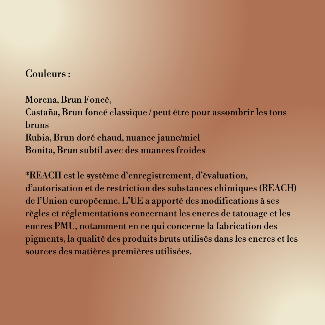 Evenflo Colours a travaillé la composition jusqu’à ce que les pigments organiques et inorganiques soient équilibrés, l’objectif étant que la couleur s’estompe pour atteindre des tons neutres. Mélange à utiliser pour les tatouages ou le maquillage permanent. Avec une charge pigmentaire plus élevée et sans mélange nécessaire, utilisez n’importe lequel des quatre pigments directement avec des cartouches à aiguille ou avec des appareils manuels.